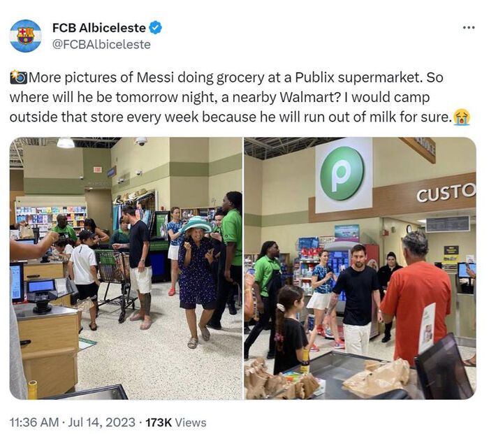 메시의 사진을 본 팬들은 SNS에 사진을 공유하며 "아르헨티나에서는 팬들에 둘러싸여 자기 집조차 들어가기 어려웠던 메시가 미국에서는 아무 간섭도 받지 않고 퍼블릭스에서 쇼핑을 한다"라고 썼습니다.