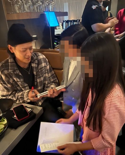 이와 함께 공개한 사진 속에는 한 식당에서 정용진의 쌍둥이 자녀가 강동원 앞에 사인을 받으려 서 있는 모습. 아이들은 강동원에게 노트를 내밀고 편안한 캐주얼 차림의 강동원은 다정하게 미소지은 채 이를 받아 사인을 해 주고 있다.
