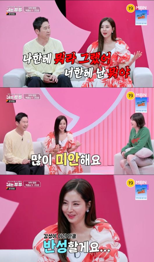 그러면서 “그렇게 얘기하는 것 자체가 사실 생각지도 못했던 얘기를 들으면 그런 얘기한 건 생각도 안나고 ‘너 나한테 뭐라 그랬어! 나 너한테 뭐야!라고 하게 된다”고 격한 손짓으로 부부싸움을 표현해 웃음을 자아냈다. 김새롬은 “그래서 얼만큼 미안하냐”고 했고 한채아는 “많이 미안하다. 반성하겠다”고 했다.