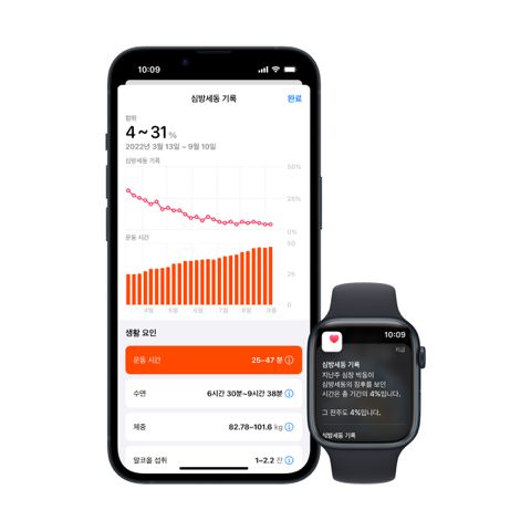 애플은 18일부터 한국에서 심방세동(AFib) 기록 기능을 워치OS9이 설치된 애플 워치 시리즈 4 및 후속 기종에서 사용할 수 있다고 밝혔다.