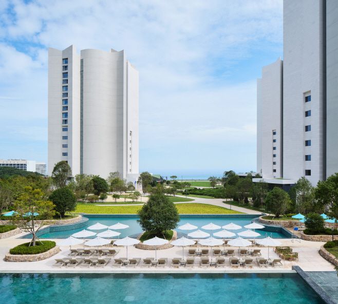 아난티가 18일 부산 기장에 '빌라쥬 드 아난티'를 오픈했다. 단독빌라, 펜트하우스, 아난티 앳 부산 호텔 등 392개 객실을 비롯해 연면적 6000평의 복합문화공간, 5개 수영장, 11개 야외 광장 등을 갖췄다. 펜트하우스는 복층, 수영장, 온천 등 시설에 따라 총 12개 타입으로 구분된다. 아난티 앳 부산 호텔의 전 객실은 복층 구조로 요트를 모티브로 설계됐다. 복합문화공간 '엘.피. 크리스탈'에는 아난티의 시그니처 라이프스타일 리테일숍 '이터널저니'를 비롯해 편집 브랜드숍, 갤러리, 레스토랑, 라운지 등이 들어섰다. 세계 최초로 국내에 문을 연 '세인트제임스&카페'도 입점했다.
