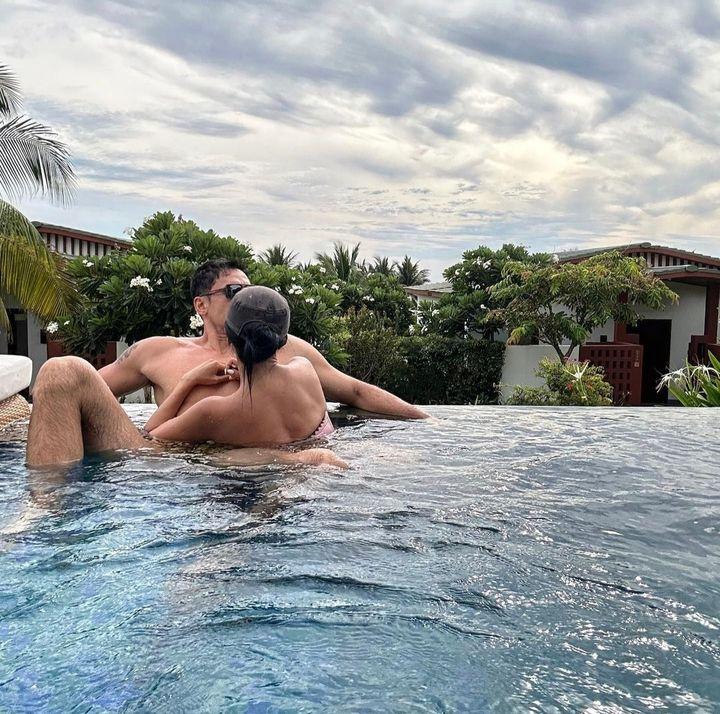줄리엔강은 지난 15일 자신의 소셜미디어에 "여기 좋다"고 적고 여러 장의 사진을 올렸다. 사진에서 줄리엔 강과 제이제이는 야외 수영장에서 둘만의 달달한 시간을 보내고 있다. 두 사람 모두 수영복을 입고 완벽한 몸매를 과시했다. 특히 줄리엔 강과 제이제이는 얼굴을 맞대고 꼭 끌어안은 포즈를 취하며 마치 신혼여행에 온 부부처럼 넘치는 애정을 뽐내 눈길을 끌었다.