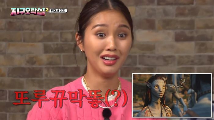 미미가 <뿅뿅 지구오락실 2>의 영화 <아바타> 명대사 말하기 게임에서 특이한 발음으로 ‘토르크 막토’라고 대답해 웃음을 자아냈다. tvN 제공. |