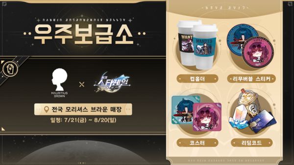 또 21일부터 내달 20일까지 전국 모리셔스 브라운 매장에서 콜라보레이션을 실시한다는 점에서 팬층의 관심이 쏠릴 것으로 보인다. 콜라보 세트를 판매하며 컵홀더, 리무버블 스티커, 코스터, 리딤 코드 등을 지급할 예정이다. 내달 4일부터 6일까지는 스텔라론 헌터의 출몰도 예고해 기대가 모아지고 있다.