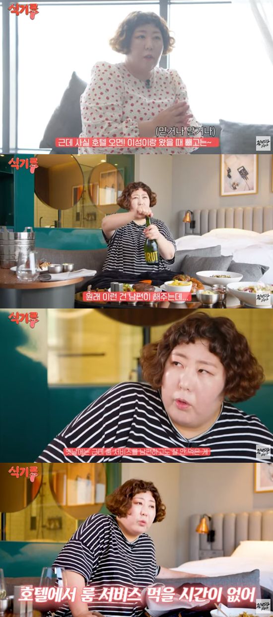 지난 17일 유튜브 채널 '좋댓구요 스튜디오'의 '식기루' 코너에서는 '맛.잘.알+트.민.녀라 불리는 식기루가 선택한 첫 번째 호텔! 룸서비스+ 조식 탈탈 털어먹고 왔습니다'라는 제목의 영상을 게재했다.
