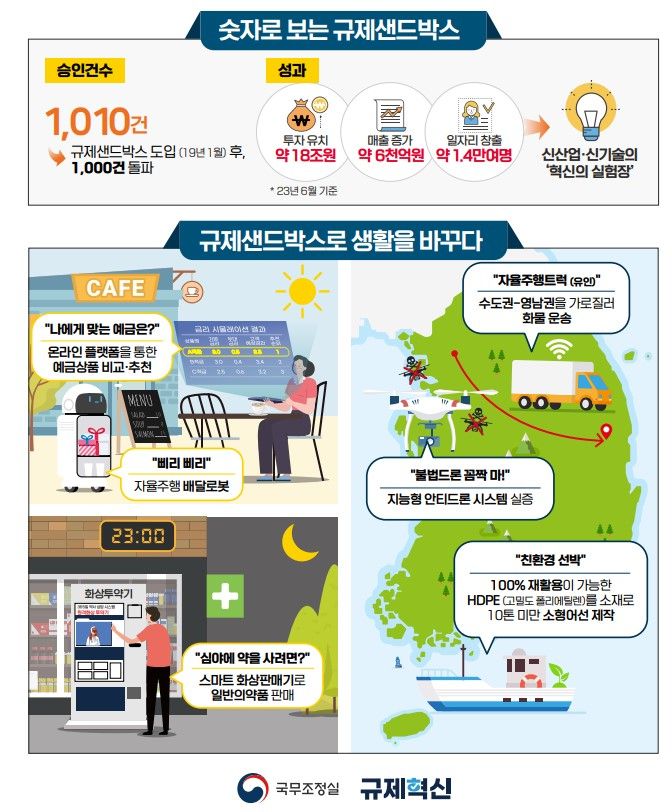 지난달 기준으로 규제샌드박스 승인기업들은 약 18조원의 투자유치에 성공했고 매출은 약 6000억원 증가했다. 또 1만4000여개의 새로운 일자리를 창출했다.