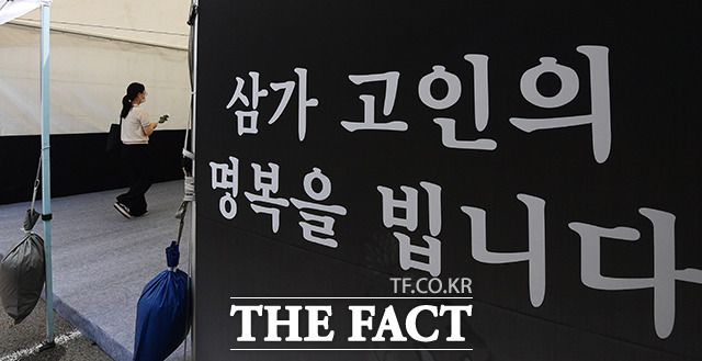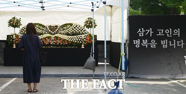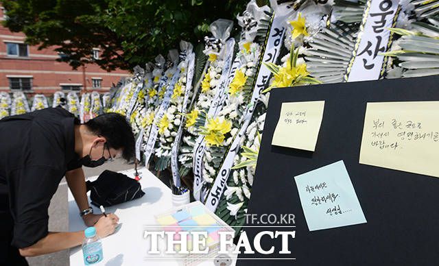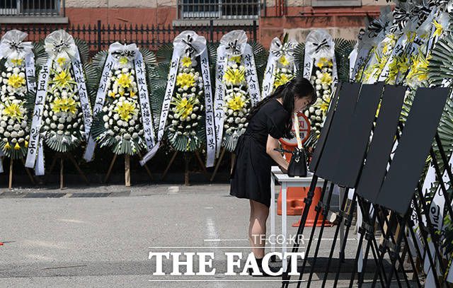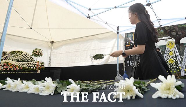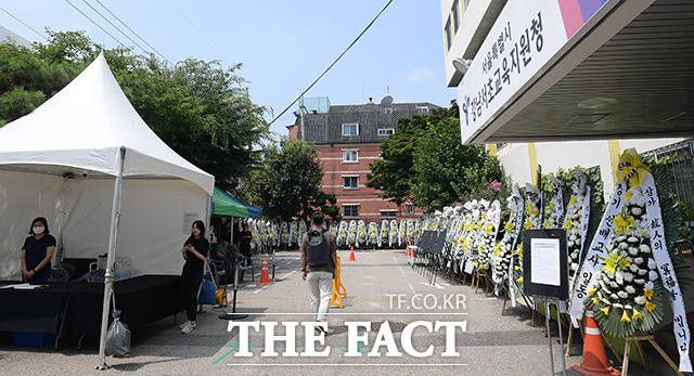 [더팩트ㅣ서예원 인턴기자] 초등학교 교사가 교내에서 극단적인 선택을 한 사건이 발생한 가운데 21일 오전 서울 강남구 강남서초교육지원청에 설치된 분향소에 고인을 추모하기 위한 추모객들의 발길이 이어지고 있다.