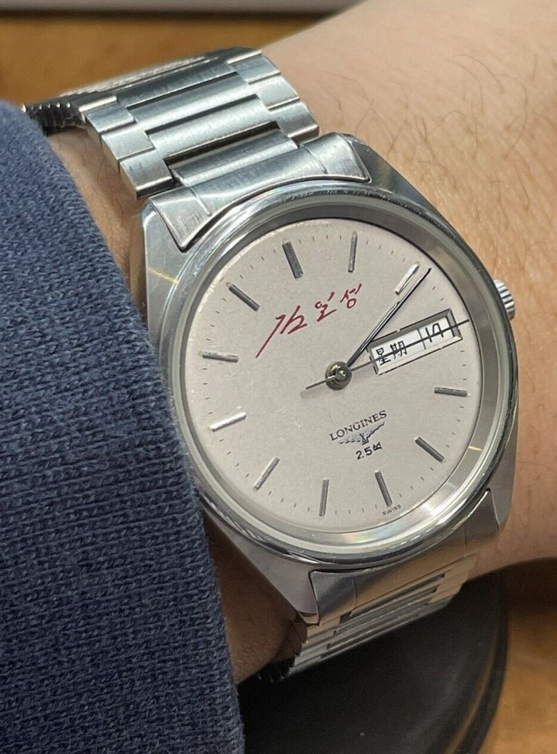 온라인에 매물로 나온 '명함 시계'. 김일성 이름이 새겨진 스위스 론진 시계다. '星期'(요일)가 한문으로 표기돼 있다. /이베이 |