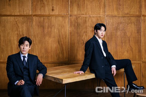배우 설경구와 도경수가 화보 촬영에서 포즈를 취하고 있다. [사진=씨네21] |