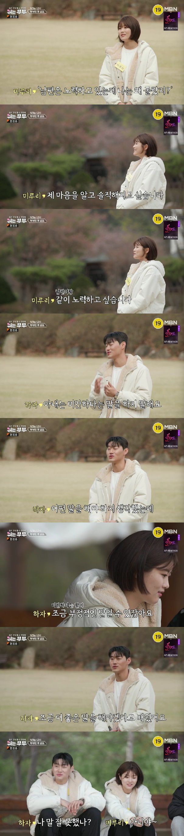 이에 한채아는 "많이 배워가고 있다. 예전에는 지금 미루리 부부와 비슷했다. 예를 들어 각방을 쓰거나 부부싸움을 하더라도 내 탓이 아닌 상대방 탓, 상황 탓을 하게 됐는데 '쉬는 부부'를 하면서 상대방의 마음을 생각하게 되더라"라고 끄떡였다.
