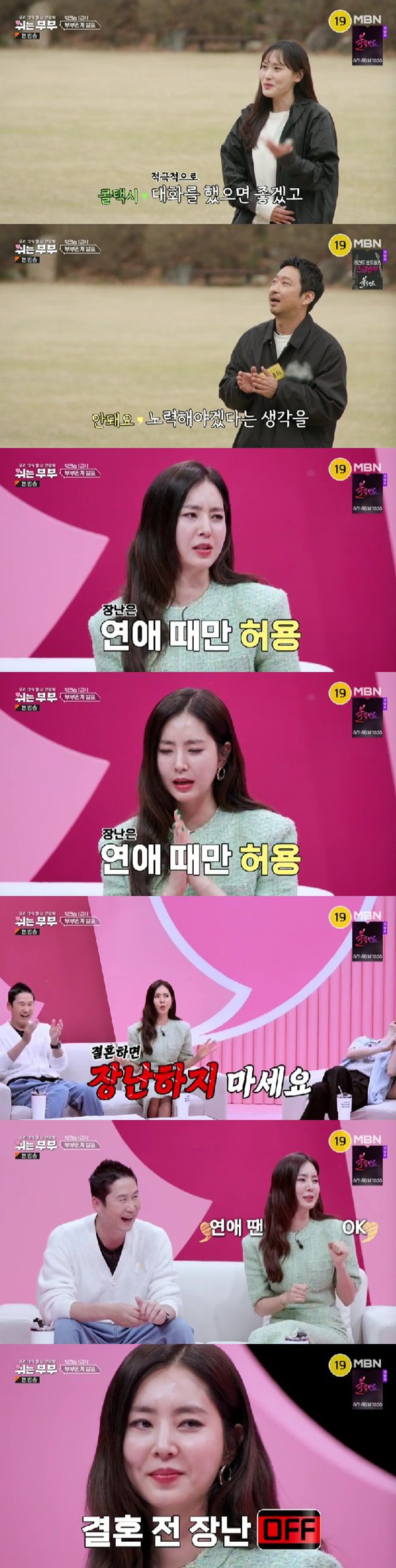 24일 방송한 MBN 예능프로그램 ‘쉬는 부부’에서 콜택시 아내는 "1차 워크숍이 끝나고 달라진 건 딱히 없다"라고 말했다.
