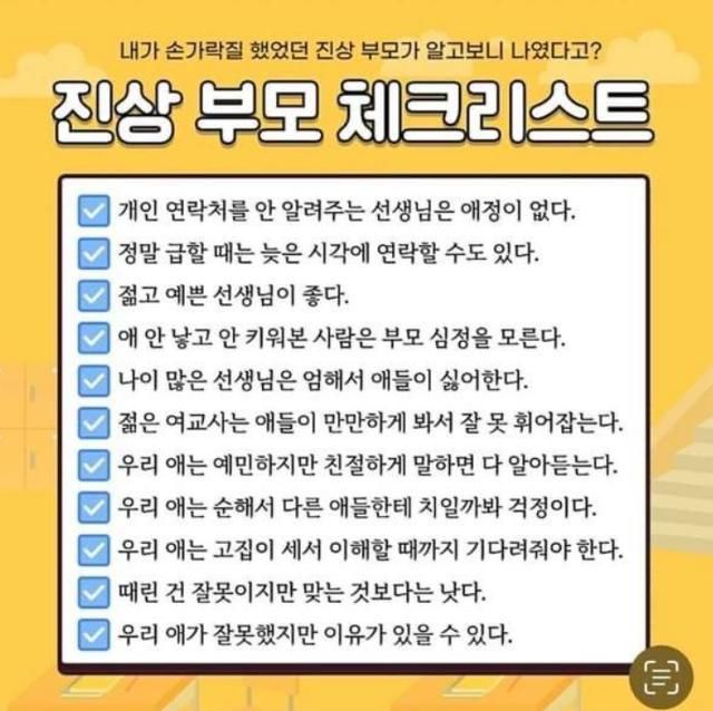 '진상 부모 체크리스트' '진상 부모 단골 멘트' 화제