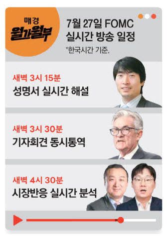 FOMC 성명서 발표 전후로 홍장원 뉴욕 특파원이 실시간 해설을 진행하고, 파월 의장의 기자회견 후에는 김용갑 뉴욕 특파원이 윤제성 뉴욕생명자산운용 최고투자책임자(CIO) 겸 아태 회장과 인터뷰를 하며 월가 반응을 전달할 예정입니다.