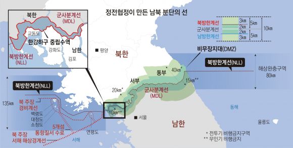 정전협정은 백령도 등 서해 5도를 남측 영토로 포함시켰지만 해상경계엔 합의하지 않으면서 충돌의 불씨가 됐다. NLL은 마크 클라크 당시 주한 유엔군 사령관이 정전협정 체결 한 달 뒤 우발적 무력충돌 가능성을 줄이기 위해 서해와 동해상에 설정한 해상경계선이다. 당시 북한은 별다른 이의를 제기하지 않았지만 1973년에는 항행 사전 승인을 요구하는 등 NLL 무효를 주장해 왔다. 정전협정 체결 당시 영해 기준으로 3해리(약 5.5㎞)가 국제사회에서 통용되다 1970년대부터 12해리(약 22㎞)로 바뀐 것도 한 요인이 됐다.