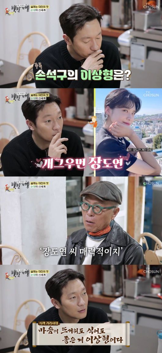 장도연은 이동욱, 공유와는 직접 만나 묘한 분위기를 연출했는데, 손석구는 방송에서 공개적으로 장도연이 이상형이라고 밝혀 크게 화제가 됐다. 앞서 손석구는 지난 4월 방송된 TV CHOSUN ‘식객 허영만의 백반기행’에 출연했을 때 이상형이 장도연이라고 밝혔다. 당시 허영만은 손석구에게 “아직 결혼 안 했죠?”라고 물은 뒤 “우리 프로그램이 상당히 시청자 폭이 넓다. 이 순간을 통해 어떤 이상형이 있는지 말해달라”고 부탁했다.