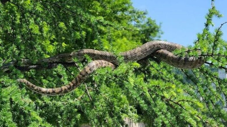 나뭇가지를 휘감은 거대한 검은 무언가가 포착이 됐는데, 가만히 살펴보니 수 미터에 달하는 초대형 뱀이었습니다.