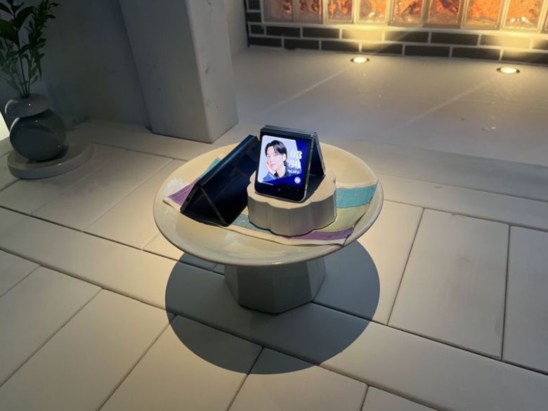 우선 한옥을 배경으로 갤럭시 Z플립5·폴드5 모델 등 신제품이 세팅된 테마존이 있었다. 해당 공간은 빌딩 숲, 툇마루와 소반 등 서울을 상징할 수 있는 아이템을 통해 다양한 콘셉트로 사진을 찍을 수 있게 구성됐다.