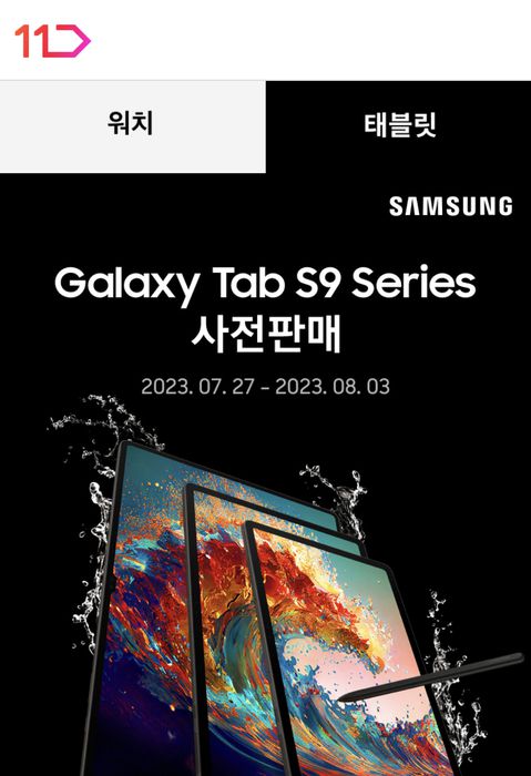 11번가는 삼성전자 태블릿 PC 신제품 '갤럭시 탭 S9' 시리즈 사전판매를 실시한다.