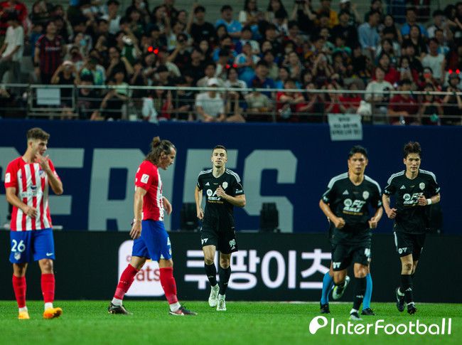 아틀레티코가 균형을 깼다. 전반 12분 팀K리그 코너킥 차단 이후 아틀레티코 역습이 진행됐다. 르마가 볼을 잡은 다음 돌파를 시도했다. 그리즈만이 패스를 받고 시도한 슈팅이 이창근에게 막혔지만 르마가 세컨볼을 밀어 넣어 골망을 흔들었다.