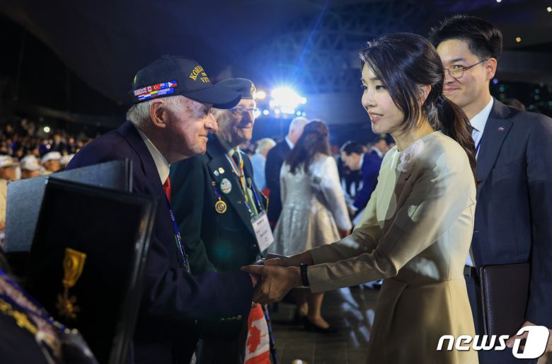 (서울=뉴스1) 오대일 기자 = 김건희 여사가 6·25 정전협정 70주년을 맞은 27일 부산 해운대구 영화의 전당 야외극장에서 열린 유엔군 참전의날·정전협정 70주년 기념식에서 참전용사와 악수하고 있다. (대통령실 제공) 2023.7.27/뉴스1kkorazi@news1.krCopyright ⓒ 뉴스1. All rights reserved. 무단 전재 및 재배포 금지.이 기사의 카테고리는 언론사의 분류를 따릅니다.0공유하기