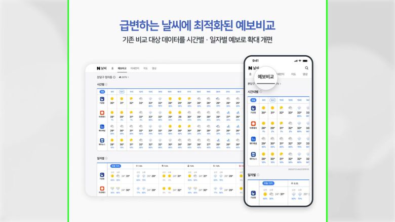 네이버는 급격한 기후 변화에 맞춰 필요한 날씨 정보를 손쉽게 확인할 수 있도록 날씨 서비스를 개편했다고 밝혔습니다.