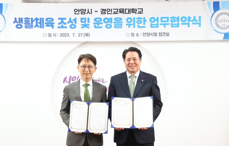 [헤럴드경제(안양)=박정규 기자]안양시가 주민 생활체육 활성화를 위해 경인교대와 ‘생활체육시설 조성 및 운영’ 업무협약을 체결했다고 28일 밝혔다.