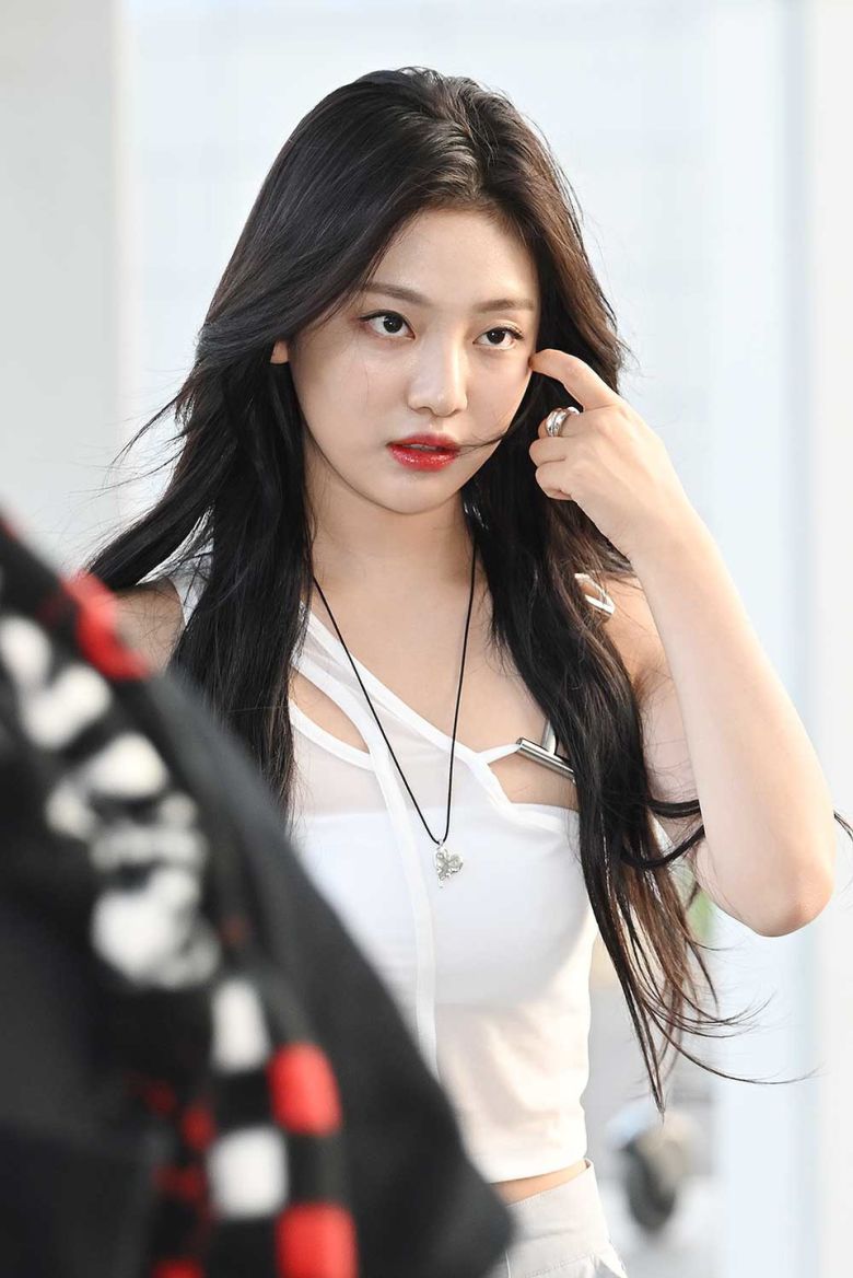 이날 에스파 닝닝이 출국장으로 향하고 있다.
