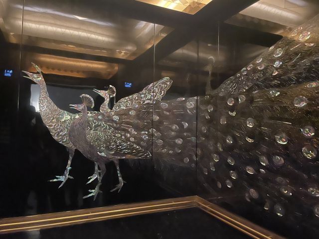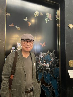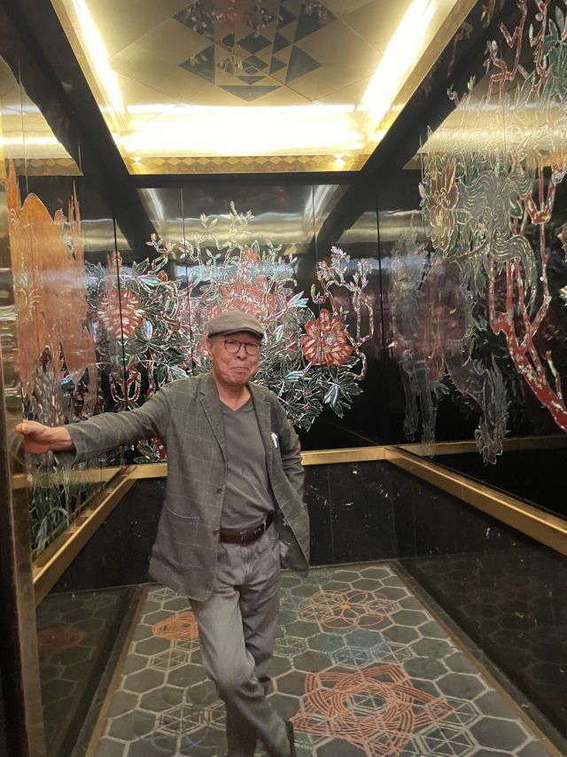 전 작가는 목재 회사에서 일하던 젊은 시절 우연히 옻칠의 매력에 빠졌다. 식탁 등 가구에 장식을 하며 칠예가로 살던 그는 어느 날 밥상 1000개에 옻칠을 해달라는 주문을 받는다. 일본 도쿄 ‘메구로가조엔’ 식당에서 사용되는 밥상이었다. 메구로가조엔은 8000여 평 규모를 자랑하는 일본 최초의 호화 연회장이다. 1930년대에 지어진 이곳의 벽 장식은 대부분 거대한 나전옻칠공예로 꾸며져 있는데 대부분 작품에 주름질·꺾음질 등 조선의 전통 기법이 적용됐다. 일제강점기 일본으로 건너간 조선의 옻칠 장인들의 솜씨다.