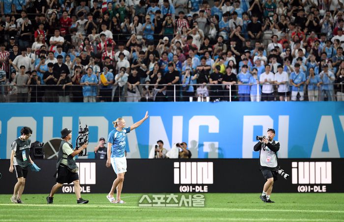 맨체스터 시티의 엘링 홀란이 30일 서울월드컵경기장에서 열린 쿠팡플레이 시리즈 아틀레티코 마드리드와 경기에서 1-2로 패한 뒤 팬들에게 인사를 하고 있다. 2023. 7. 30. 박진업기자 upandup@sportsseoul.com |