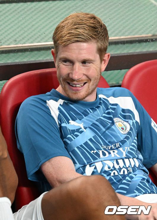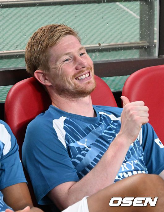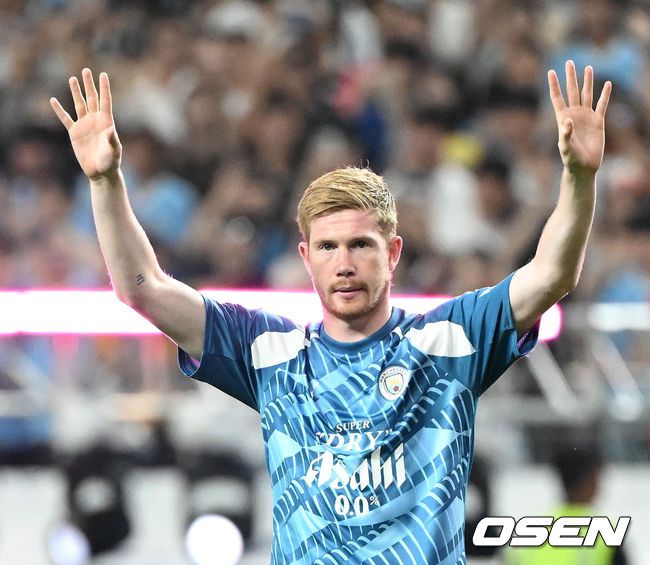 [OSEN=서울월드컵경기장, 서정환 기자] ‘김덕배형’ 케빈 데 브라위너(32, 맨시티)는 아쉽게 한국의 그라운드를 밟지 못했다. 하지만 팬서비스는 만점이었다.