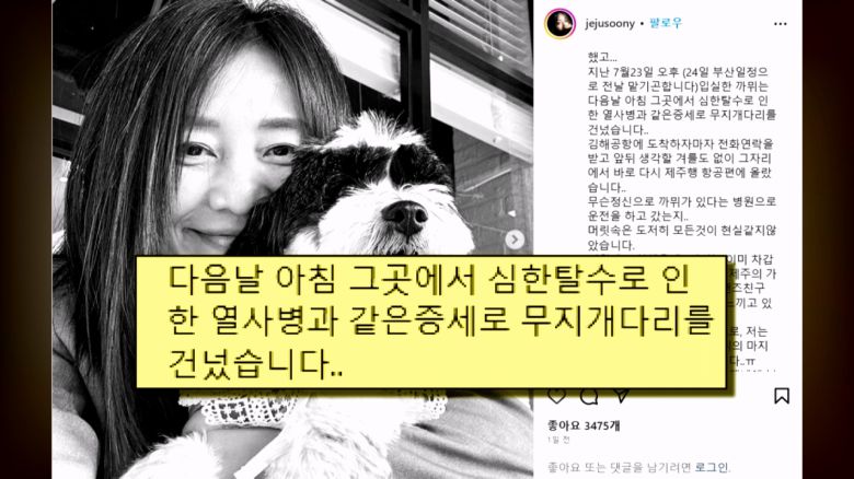 장 씨는 지난 24일 10년 동안 길러온 반려견 까뮈를 열사병으로 떠나보냈다고 설명했습니다.