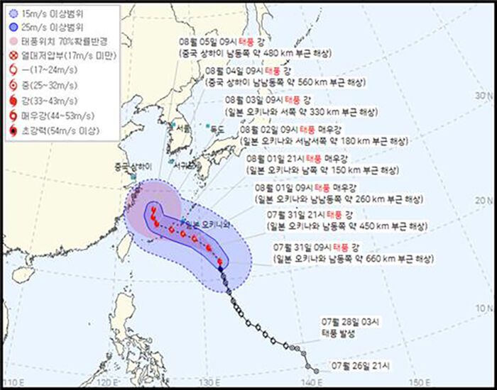 이는 다음 달 5일쯤 중국 상하이 남쪽에 상륙할 것으로 본 기존 예상과 다릅니다.