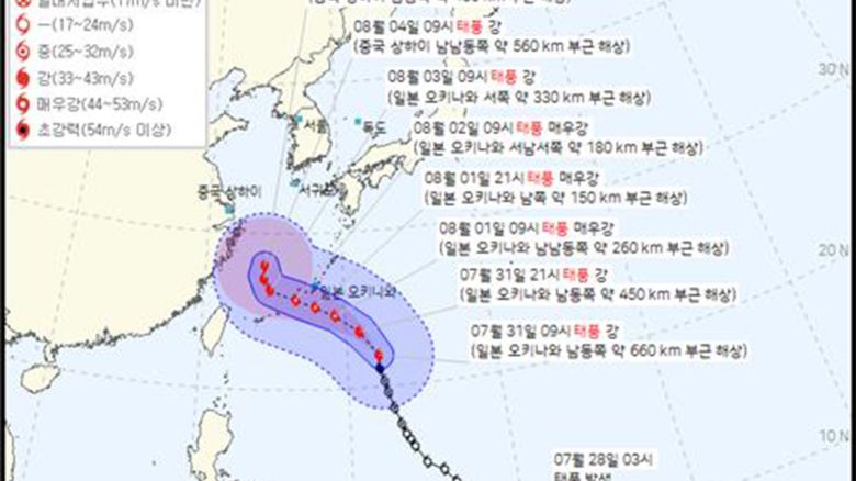 카눈의 세력은 현재 '강'인데 다음 달 1~2일 '매우 강'까지 발달할 전망입니다.