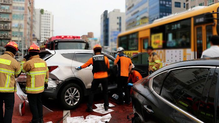 이 사고로 횡단보도를 건너던 20대 남성 B 씨가 숨지고 다른 차량 운전자와 버스 승객 등 11명이 부상을 입고 병원으로 옮겨졌습니다.