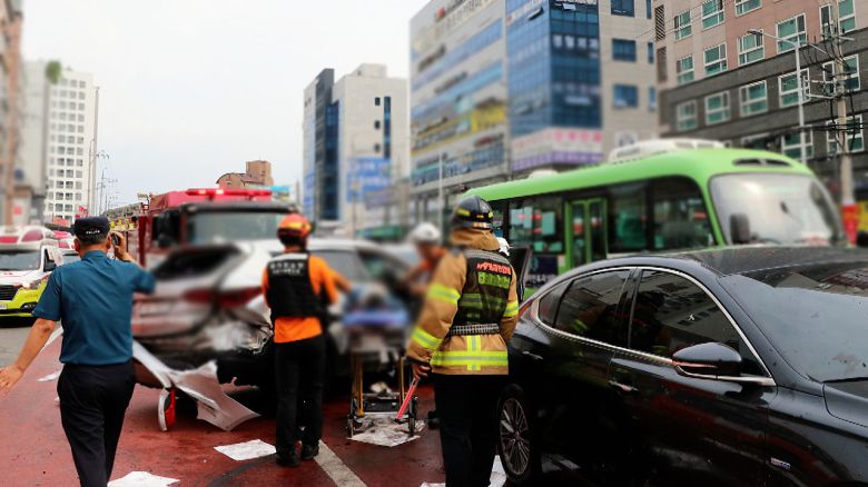 오늘 (31일) 오후 3시 50분쯤 경기도 김포시 고촌역 앞 삼거리에서 60대 여성 A 씨가 몰던 산타페 차량이 횡단보도를 건너던 시민과 차량 5대를 잇따라 충돌했습니다.