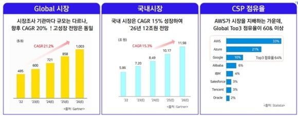 실제 전세계적으로 클라우드 MSP 시장은 연평균 20% 이상의 고성장을 보이고 있다. 국내 역시 오는 2026년까지 매년 15%씩 성장해 12조원 규모 시장이 예상된다.
