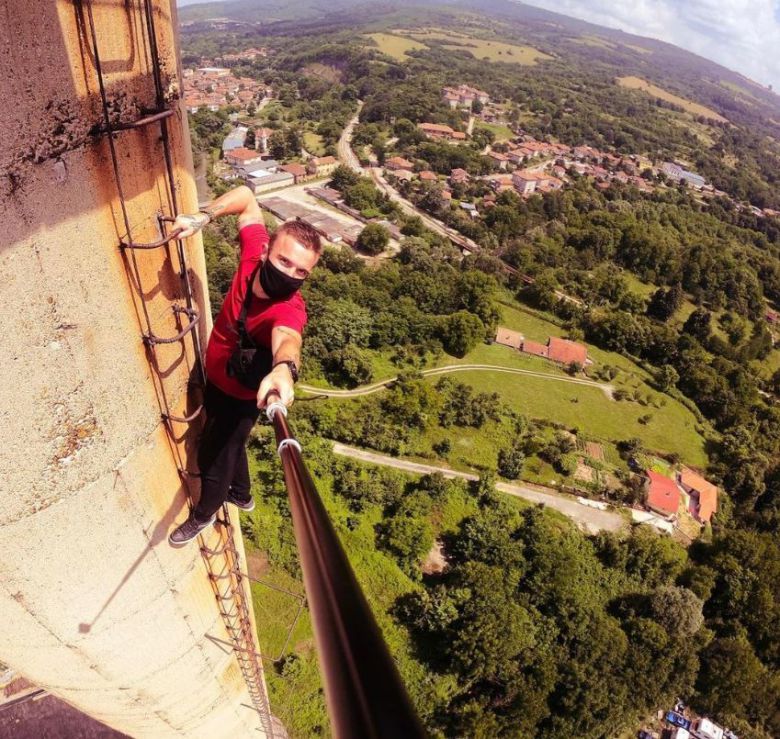 불가리아 가브로보 지역의 굴뚝에 오르고 인증을 한 레미 루시디. @remnigma 인스타그램 캡처 |