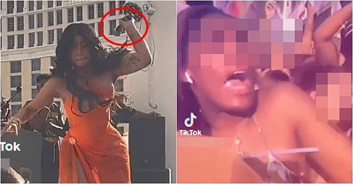 가수 카디비가 공연 도중 관객에 분노해 마이크를 던졌다.