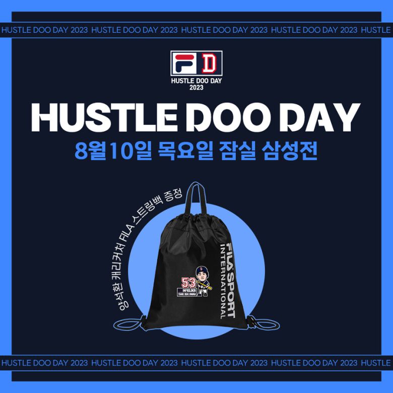 [스포티비뉴스=고유라 기자] 두산 베어스가 10일 잠실야구장에서 열리는 삼성 라이온즈와 정규시즌 맞대결에서 '휠라 허슬두데이(Hustle Doo Day)' 이벤트를 진행한다.