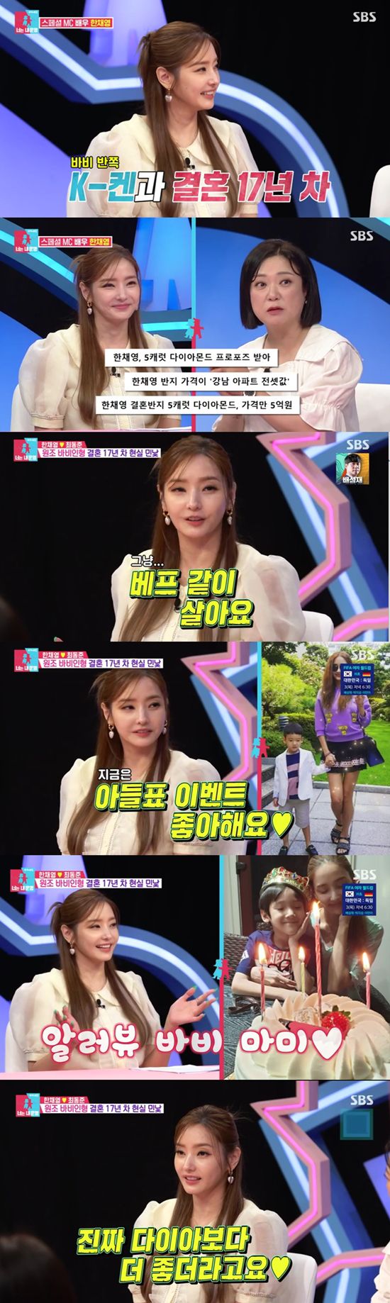 어느덧 결혼 17년 차에 접어든 한채영은 "남편과 베프(베스트 프렌드) 같이 산다. 이젠 프러포즈 물어보면 굉장히 민망하다"고 말했다.