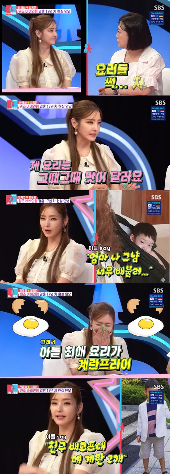 이에 대해 한채영은 "제 요리는 그때그때 맛이 다르다"며 "아들이 6살 때 꼬마 김밥을 만들어줬는데 그날따라 맛이 좀 없었던 것 같다. 세 알 먹다가 '엄마 나 배불러'라고 하더라. 다른 거 해준다고 해도 배부르다고 했다"고 이야기했다.