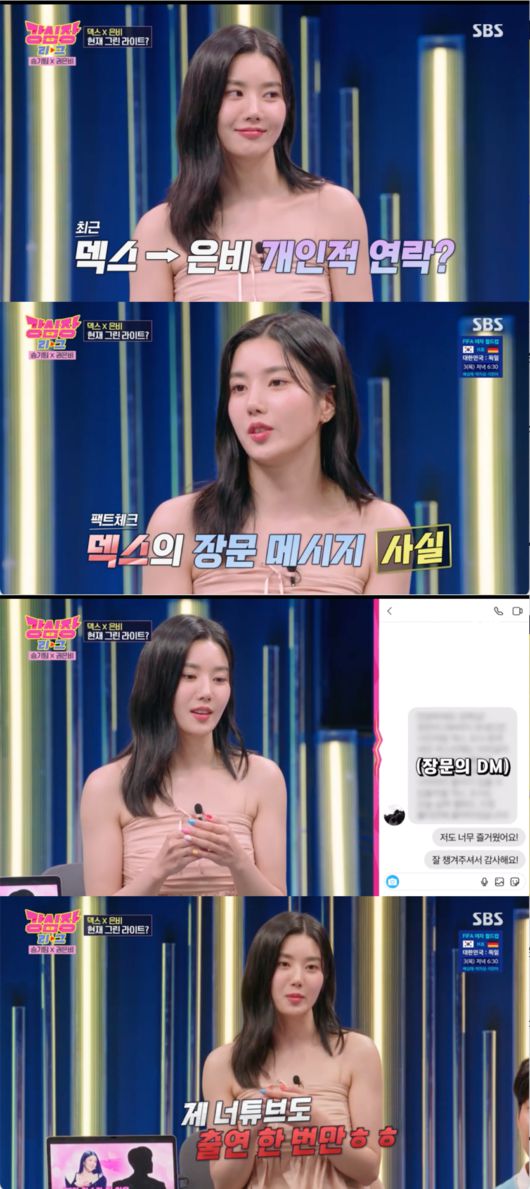 지난 1일 방송된 SBS ‘강심장 리그’에서는 권은비가 게스트로 출연해 덱스와의 후일담을 밝혔다.