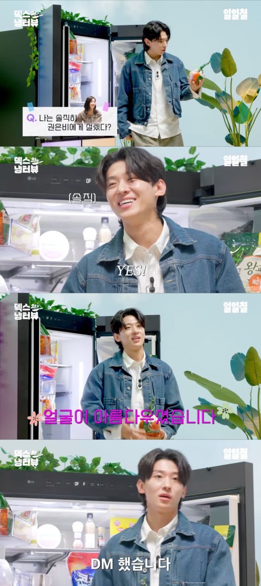 앞서 덱스는 웹예능 ‘덱스의 냉터뷰’ 시즌1을 마무리하며 권은비에게 DM을 보낸 사실을 고백한 바 있다. 당시 덱스는 ‘나는 솔직히 권은비에게 설렜다?’는 질문을 받았고 “예스”라고 답하며 “권은비님 성격이 너무 나이스 했다. 티키타카도 재밌었다. 무엇보다 동갑친구여서 마음이 갔다”고 솔직히 이야기했다.