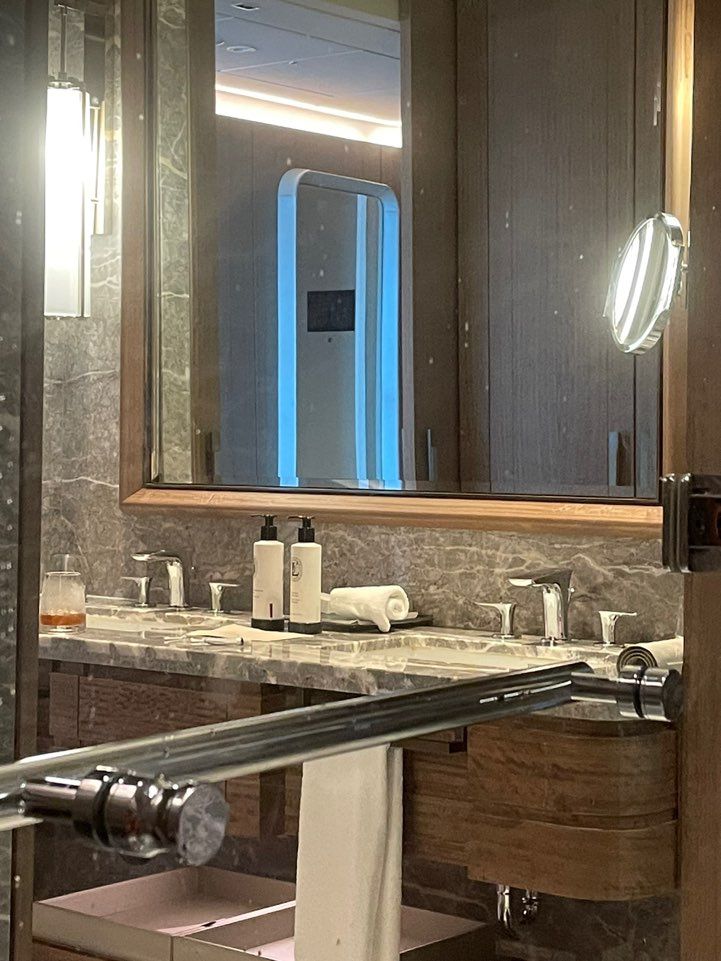 이후 작성자는 목욕 중 인기척이 들려서 고개를 들다 거울 속에 문을 열고 들어온 남자 직원과 눈이 마주쳤다. 작성자의 주장에 따르면 현관 옆에 붙은 거울로 화장실 안쪽이 보이는 구조였고 "다시 오겠습니다", "나가겠습니다"를 외치며 남자 직원이 나가는 것을 봤다는 것이다.