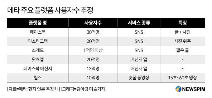 메타는 이미 30억명의 월간 사용자수를 확보한 페이스북 SNS를 운용하고 있다. 또 20억명이 사용하고 있는 인스타그램 SNS도 운용하고 있다. '트위터' 사용자들을 무섭게 빨아들이고 있는 떠오르는 SNS '스레드'도 있다. 이제 세계는 평평해졌다. 한국인의 인스타그램에 일본사람이나 미국사람이 '좋아요'를 누르고 댓글을 남기는 건 드문 일이 아니다. 반대로 한국 사람이 영국 사람이나 프랑스 사람의 페이스북에 '좋아요'를 누르는 일도 흔하다.