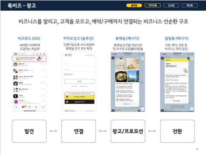 카카오톡 채널을 통해 메시지 형태로 광고를 전달하는 '톡채널' 광고도 상당히 양호한 매출을 보여주고 있다. 광고주의 상품에 이미 관심이 있는 톡 채널 친구를 대상으로 광고가 진행된다. 당연히 우수한 도달율과 구매전환율을 보일 수밖에 없다. '메시지 광고'는 단가가 낮은 대신 광고 빈도수는 '비즈보드' 광고보다 훨씬 더 높은 게 특징이다.