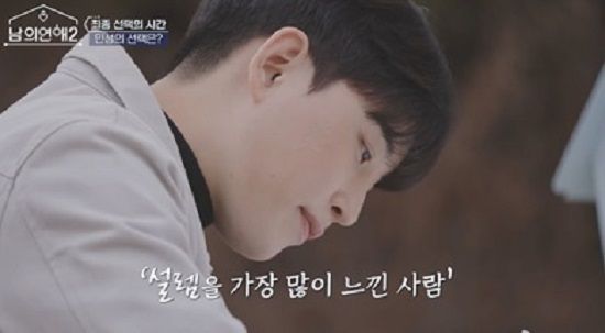 특히 마지막까지 형준과 형진, 두 남자와 미묘한 삼각 로맨스를 형성했던 민성은 고뇌에 빠진 표정을 감추지 못한다. 민성은 “다 내려놨던 것 같다. 상대방들이 어떤 결정을 내리는지 받아들이는”이라고 묘한 표정을 짓는다. 뒤이어 민성은 “설렘을 가장 많이 느낀 사람”에게 카드를 쓰고 ‘남의 집’을 담담하게 떠난다.