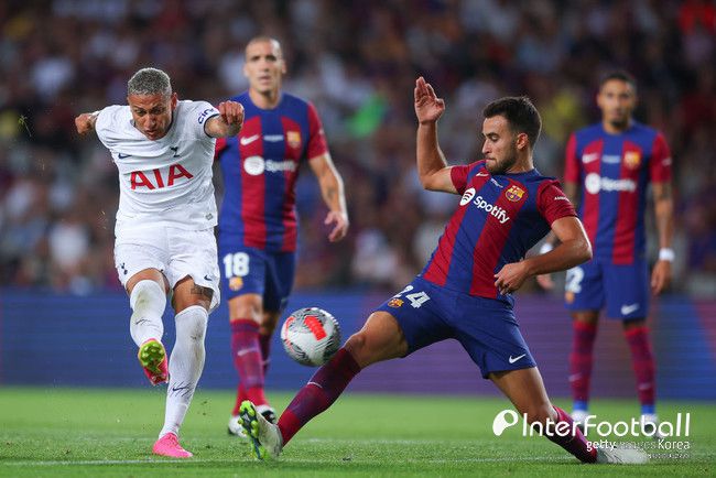 바르셀로나 공격이 계속됐다. 전반 4분 레반도프스키가 볼을 지켜낸 다음 중앙으로 연결했다. 하피냐가 슈팅했지만 위로 뜨며 무산됐다. 토트넘도 맞서 싸웠다. 전반 14분 짧게 처리된 코너킥과 크로스 이후 산체스가 헤더를 시도했지만 막혔다.