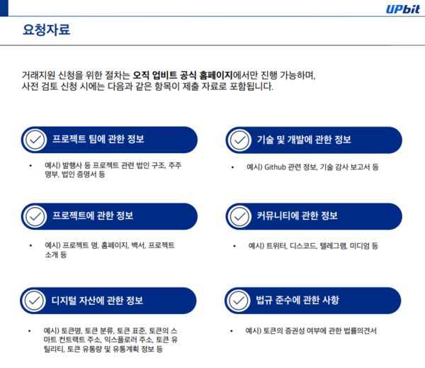 거래지원 검토 요청시 필요한 문서 6개와 거래지원 기준 5가지를 제시했다. 닥사 공동대응 절차도 자세하게 설명했다. 특히 업계서 지적했던 상장폐지 가상자산의 거래지원 재신청 기간을 3월이라고 정확하게 명시했다.