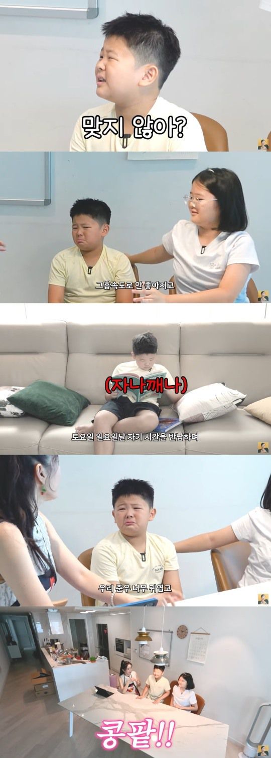 이에 앞서 장영란은 준우가 못 맞힐 경우 누나가 지우가 인물 퀴즈에 임하고, 정답이면 준우에게 기회를 한번 더 주는 추가룰을 부여했었다. 하지만 결국 지우 역시 난관에 부딪히자 준우는 울음을 터뜨렸다. 장영란은 "준우는 이날을 위해 토, 일 자기 시간을 반납하며 계속 이 책만 붙들고 있었다"고 그간 준우의 노력을 언급, 빵 터졌다.